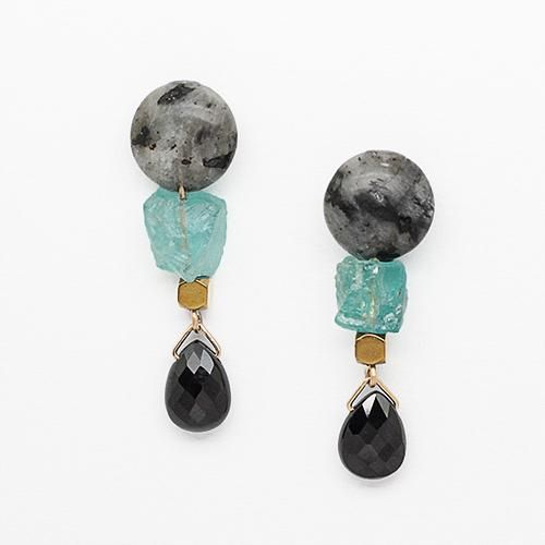 K14GF / 天然石 : ラルビカイト 約 10mm / アパタイト ラフロック / ヘマタイト(ゴールドコーティング)約 3mm / ブラックスピネル 約 8×6×3mm